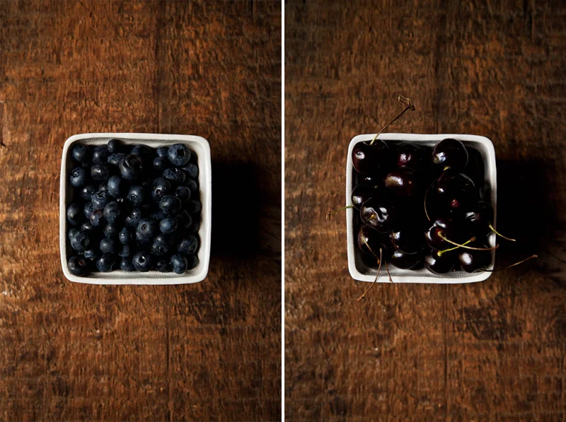 This crisp was made as a farewell to this summers strawberries and rhubarb. See what I mean?! The summer has already bid adieu to some of my favorite flavors. I also had some cherries and blueberries that were going to turn if I didn't use them up. I decided that a splash of whiskey might punch up the flavor, and it really did. I used the crumble recipe that my mother uses on her apple crisp in the fall (one of my all time favorites growing up) and it worked really nicely on this summer fruit crisp. The topping is sugary and crunchy, and it compliments the tartness of the fruit. The maple whiskey whipped cream highlights the flavors of the crisp, and adds a boozy note at the end. Perfect for a lazy summer day.