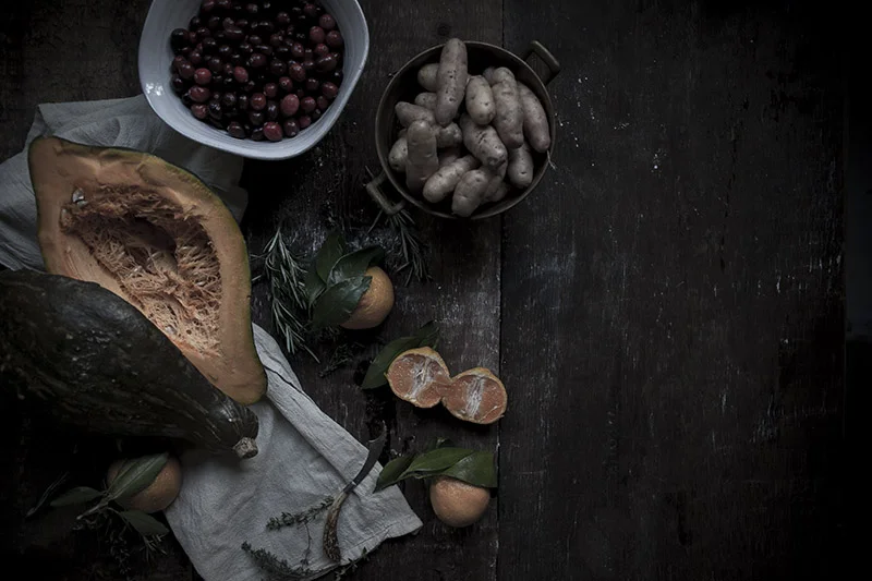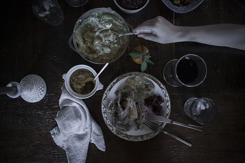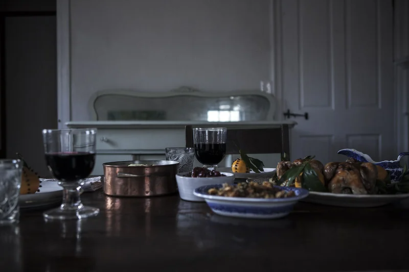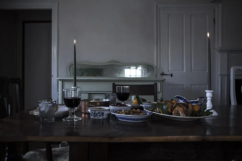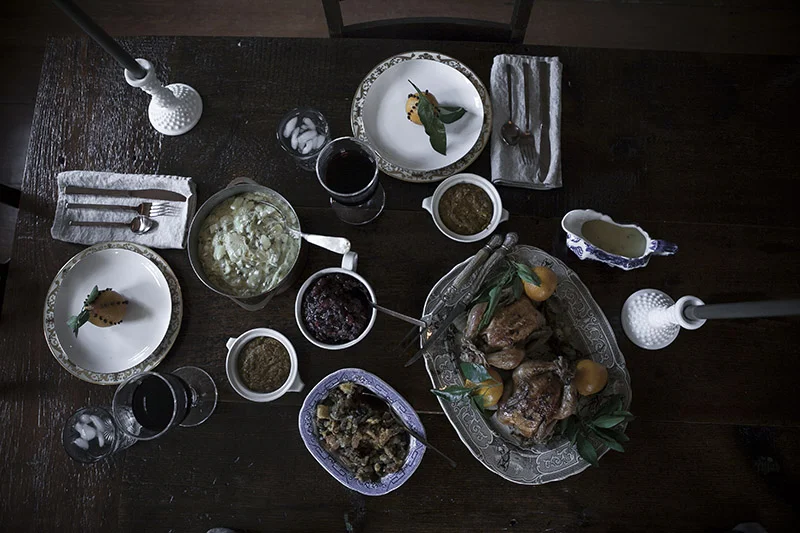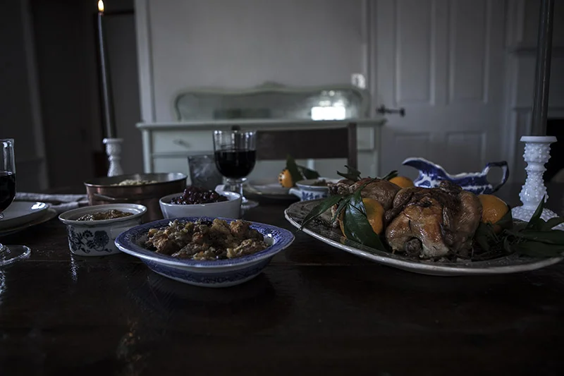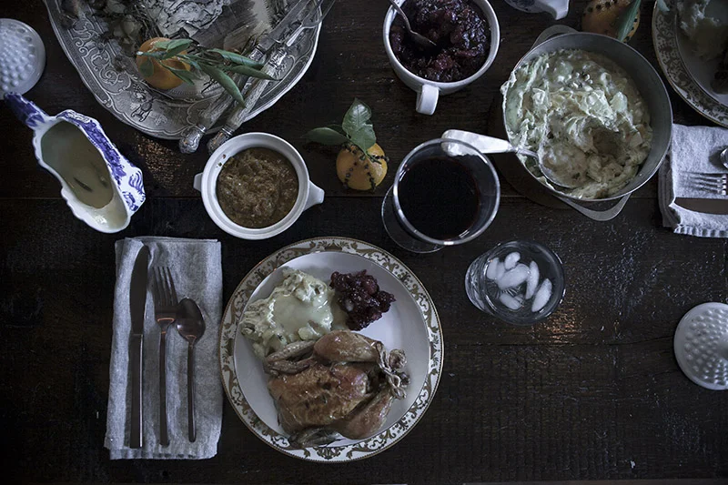 I created this menu for a Thanksgiving for two, because this year I wont be seeing my immediate family for Thanksgiving. This menu is one that Phil and I will share, quietly and in thanks. It is inspired by recipes out of a little book I found at the library, one that celebrates the old culinary traditions of New England – something that always inspires me. It is designed for two people, but you could easily increase the amount by making a turkey instead of the Cornish hens that I made, and just increase the ratios of the sides. Most of the sides make enough for six people, we just enjoy having left overs!
