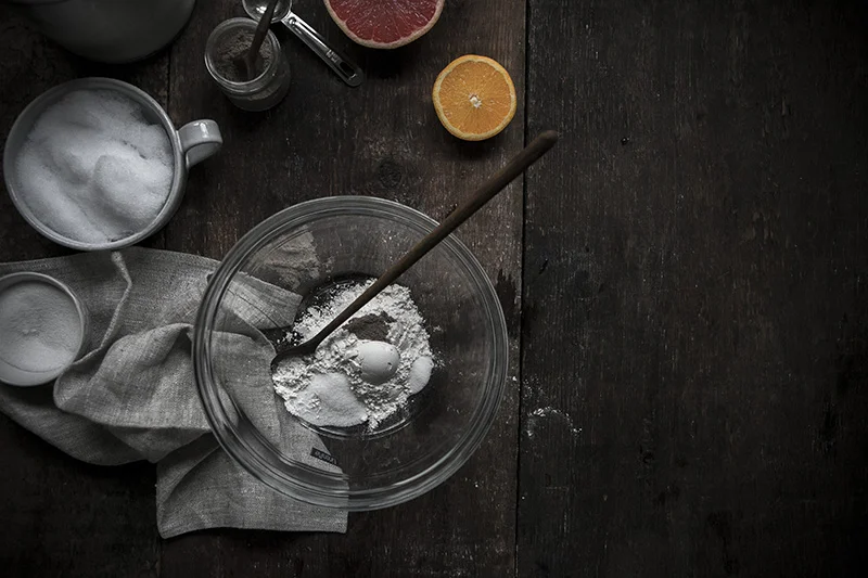 In a large bowl, whisk together the flour, salt, sugar and cardamom. Set aside.