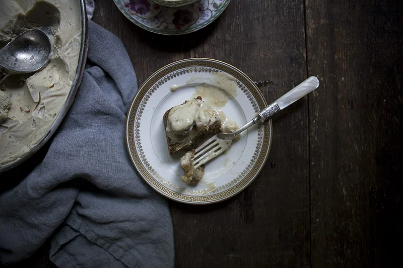 Once the ice cream is finished, allow to warm up for a few minutes to ease the scooping. Top with maple syrup, grilled peaches, anything your cravings call for!